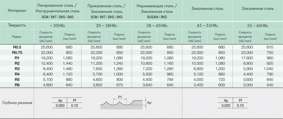 Радиус режущей кромки: